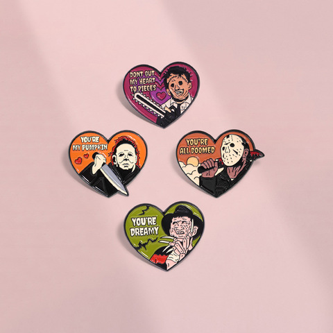 Coeur effrayant gothique pour l'amour horreur métal Badges UV imprimé fer film méchant accessoires pour Halloween Cosplay mode lettres
